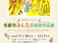 開催概要 当初お知らせしていた展示期間・搬入出日程より変更になっていますので、ご注意ください。 [展示期間] 2024年12月5日(木)~12月12日(木) 10:00~21:00[作品搬入] 2024年12月1日(日)午後・4日(水)[作品搬出] 2024年12月13日(金)・14日(土)午前[参加費用] 無料[対  象] 多摩市で活動する団体、個人。障害のあるなしに関わらずどなたでも出展できます。[会  場] パルテノン多摩市民ギャラリー・オープンスタジオ[主  催] 多摩市[運  営] 多摩市みんな ...